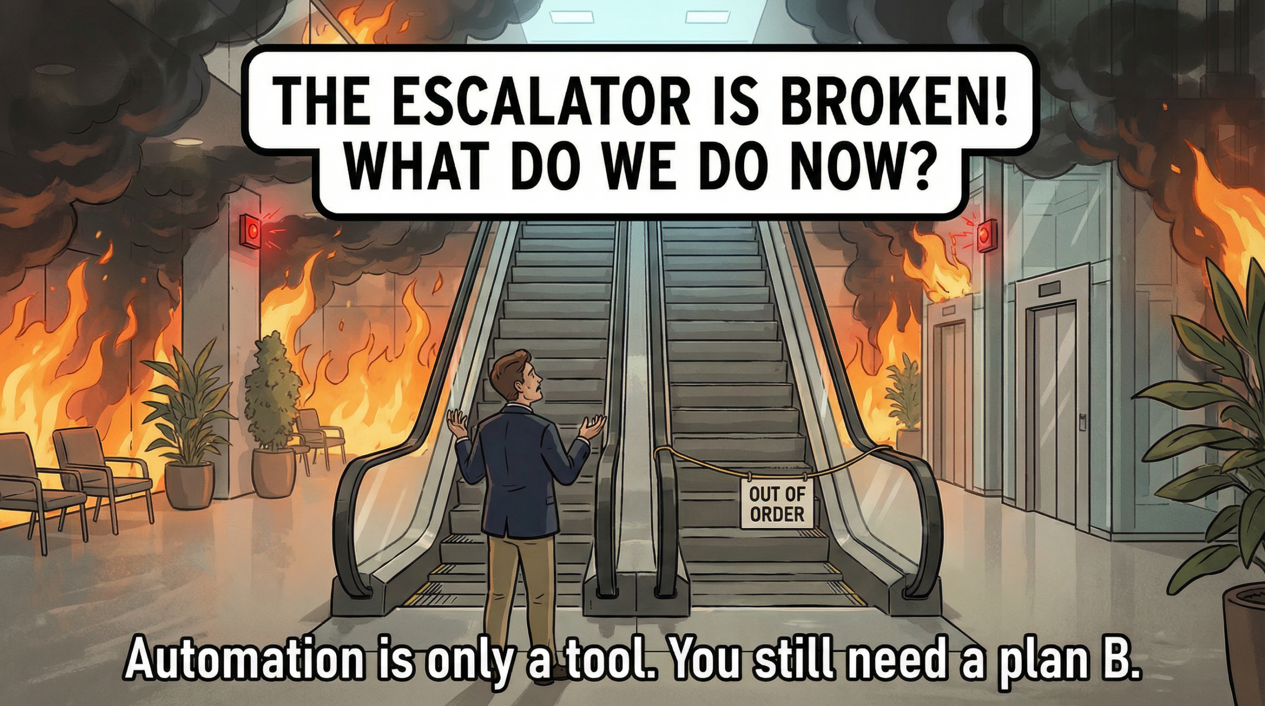 There’s a famous joke: when an escalator breaks, it doesn’t become a useless machine. It becomes stairs. Yet in many